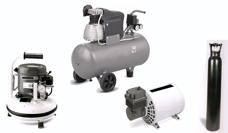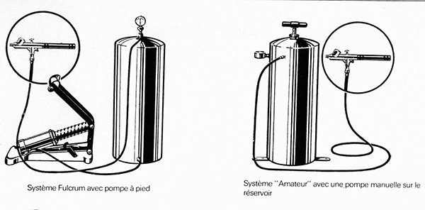 Un mot sur les compresseurs qui étaient des pompes à pied ou à main reliées à un réservoir (La peinture, c'était du sport à cette époque-là !).