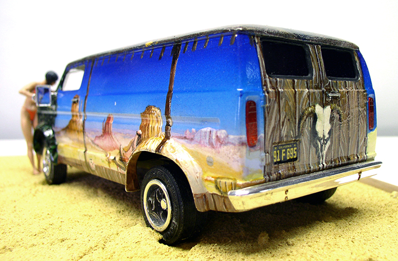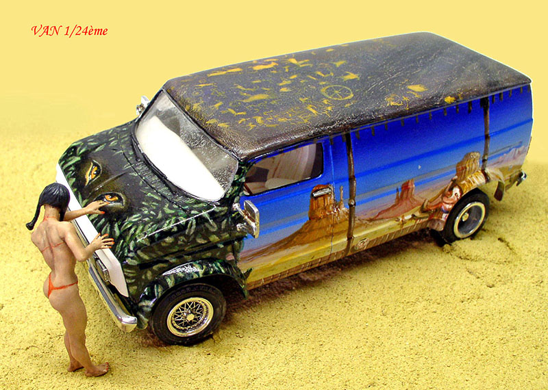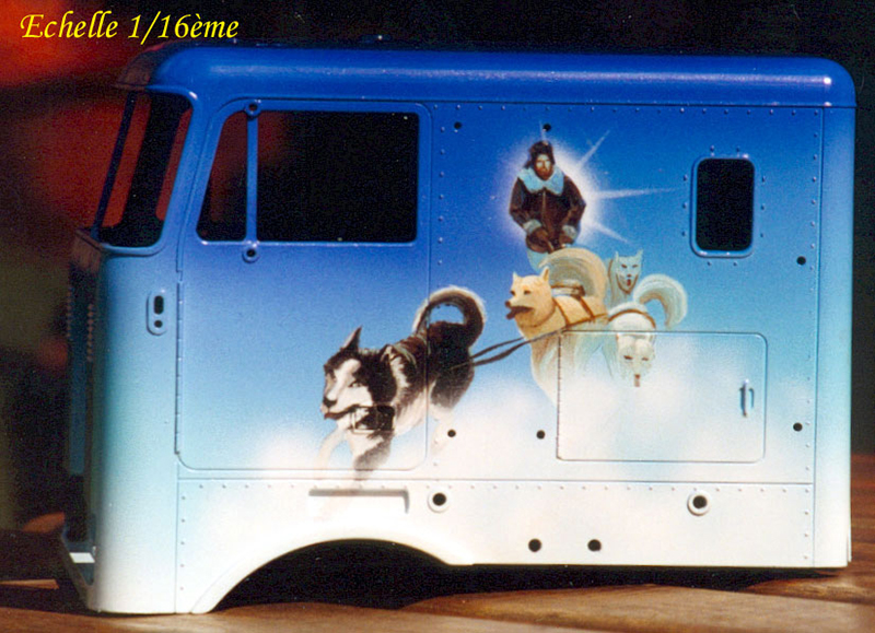 Cabine de camion : peinture acrylique Liquitex - fond à l'aérographe - personnages au pinceau - vernis de finition à l'aérographe...
