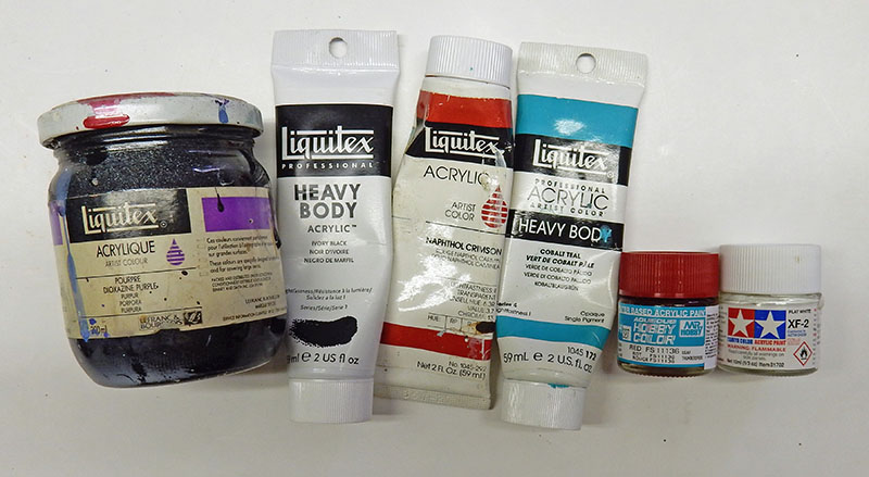 These are the most widely used, especially now in model making. They are available in 200ml jars, 59ml tubes such as LIQUITEX or 10ml jars from various brands for model making...