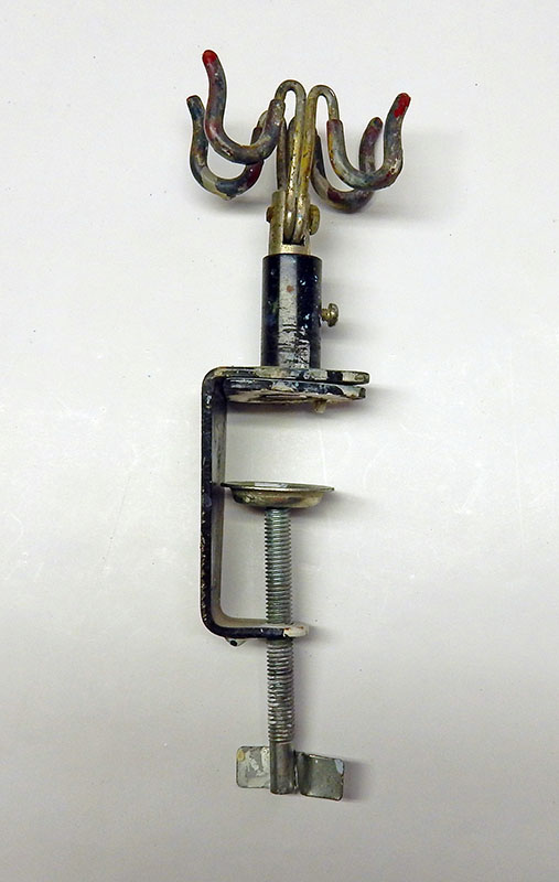 Achat incontournable quand on utilise l'aérographe : Le support - ici double - qui se fixe sur un coin de table ou sur un panneau...