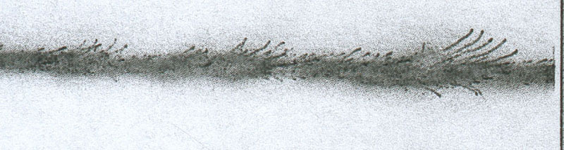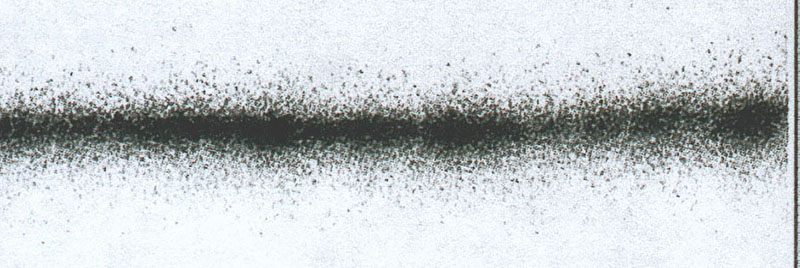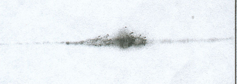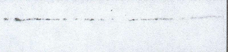 The tip of the nozzle is dirty but some colour comes through. With pressure, pigments detach and come onto the substrate. Soak the nozzle until completely clean...