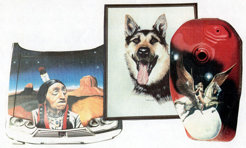 A word about compressors, which were foot or hand pumps connected to a tank (painting was sport in those days!)...