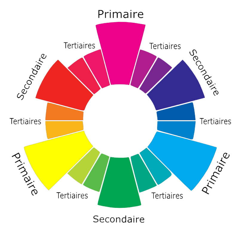 Il existe 3 couleurs primaires : rouge / bleu / jaune. En mélangeant 2 primaires, on obtient une couleur secondaire. Le mélange d’une primaire et d’une secondaire donne une couleur intermédiaire. La roue chromatique permet de visualiser chaque couleur ainsi que sa teinte complémentaire...