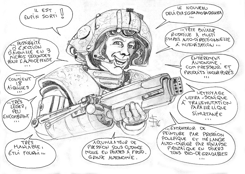 Je rappelle à nouveau les précautions à prendre lors de l’utilisation d’un aérographe au dépend… de sa bourse ! . Il est clair que l’on passe plus de temps à préparer la peinture et à nettoyer l’ensemble de l’appareil que la partie proprement peinture. Mais le résultat en vaut vraiment la peine et il serait dommage de se priver de ce support formidable...
