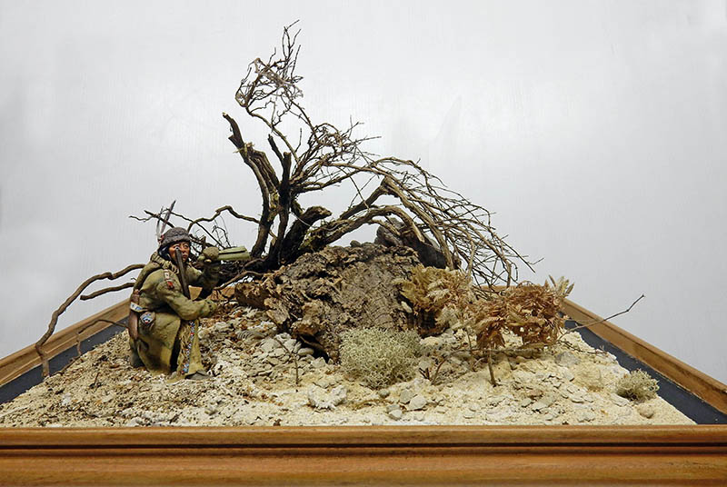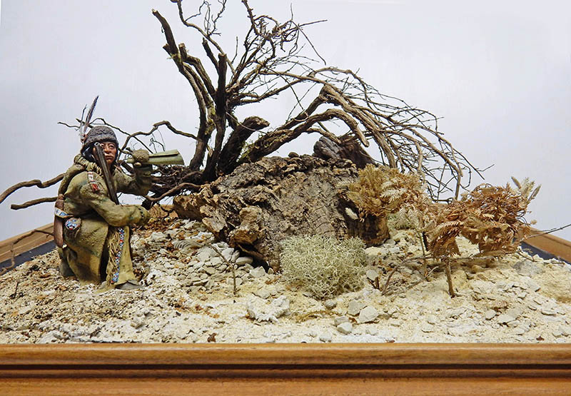 The "tree" is fixed with quick-setting wood glue and the Indian is inserted into the decor...