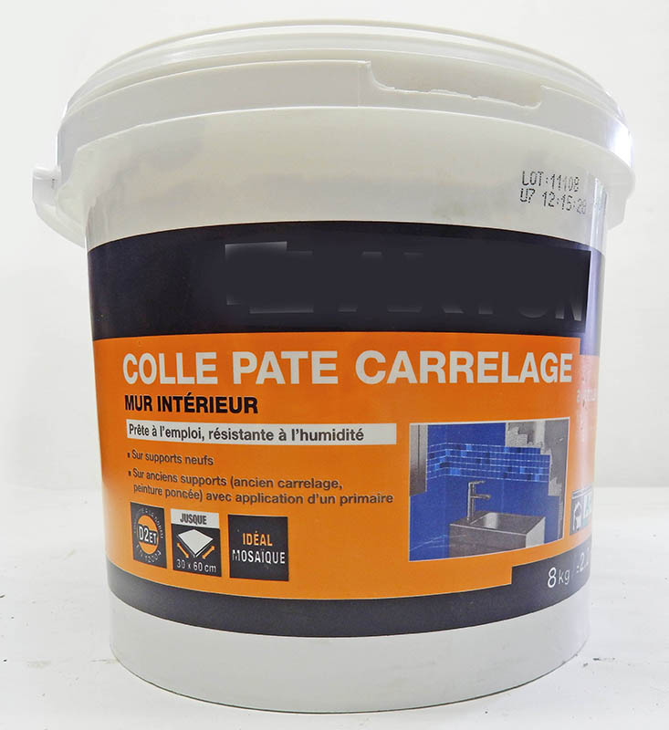 The ideal element with Polyfilla is the tiling adhesive, available in a pot as shown here, or in a bag that you can prepare yourself on request. |