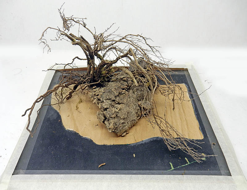 The elements are laid out on a piece of primed plywood to situate the scene...
