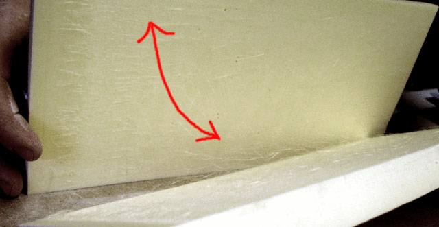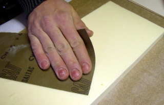 Some types of extruded polystyrene show filaments when the sheet is cut. It is essential to remove them carefully before sanding...