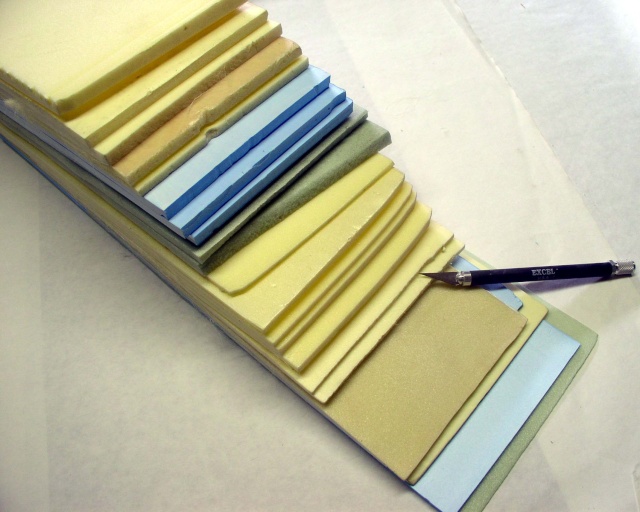 It is important to smooth the surface between each cut. To obtain sheets of different thicknesses, insert sheets of cardboard (for example, between the wood panel and the polystyrene sheet)...