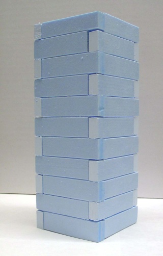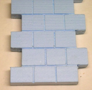 Après traçage et découpe des quatrecôtés de la tour, on trace nos lignes de joints des blocs de pierre, puis les pierres elles-mêmes...
