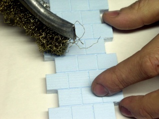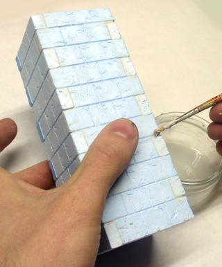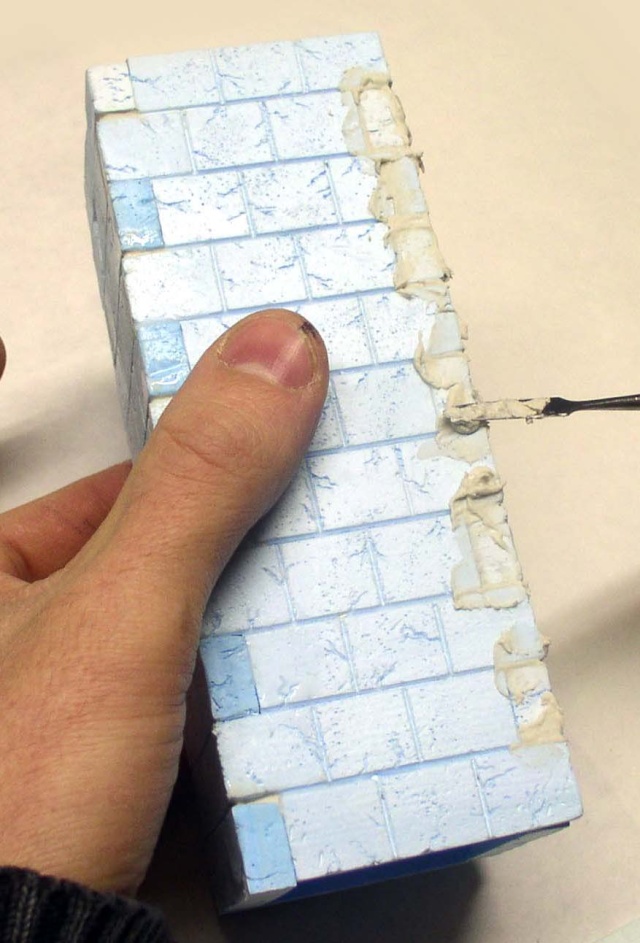 Vous êtes désormais libre de réaliser toute construction, monuments, ruines, revêtements de sols comme bon vous plaira à toutes les échelles. Le collage se fera à la colle à bois, les excédents lissés de suite au pinceau à l'eau, sinon, ceux-ci formeront des points durs difficiles à poncer, à cause de la fragilité du matériau. Le masticage des jointures sera réalisé à l'enduit de rebouchage mural, lissage idem à celui de la colle à bois. Tout le travail de mise en couleurs sera effectué de préférence à base de peinture à l'eau (acrylique) sans solvant chimique, ou alors, si vous peignez à l'huile, effectuez avant une sous-couche acrylique de manière à isoler le matériau...