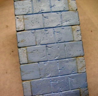 Après une sous-couche de noir mat, un brossage à sec est effectué de manière classique en variant un peu les teintes. La peinture de la tour est finie. Il ne manque plus que le toit en ardoise...