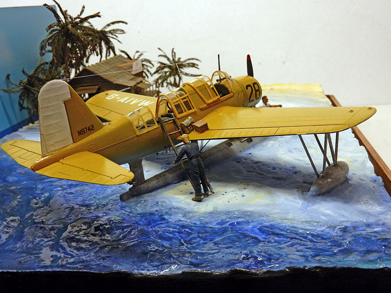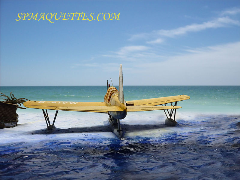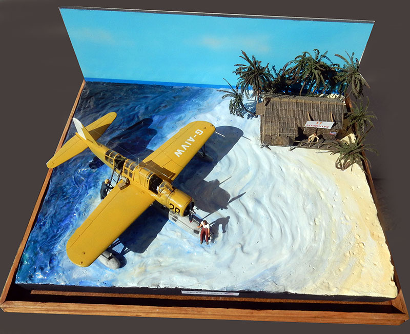 Après séchage, collage de l'avion et de la hutte sur le sol à l'aide de colle à bois...