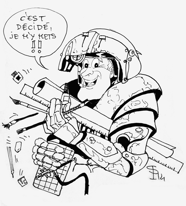 Certains grands modèles de figurines peuvent être simplement peints au pinceau avec un peu (beaucoup) d’habileté. Il faut toujours déposer une sous-couche de préférence blanche qui fera ressortir les couleurs...