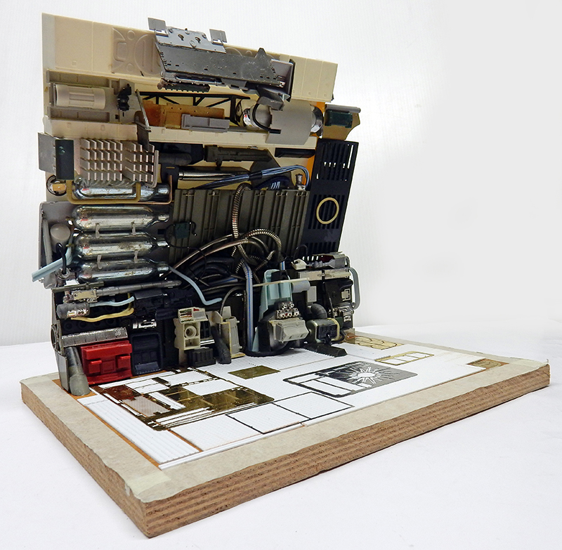 On se base sur quelques photos du film mais on ne recherche pas le détail près - rappelons que le sujet principal est Ripley. On n'oublie pas le câblage important (les décorateurs du premier Alien ont utilisé des épaves d'avions, qui, une fois "désossées" ont permis d'habiller l'intérieur du Nostromo)...