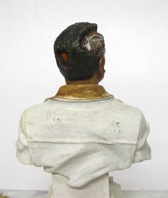 Après collage des pièces et finition des joints, le buste est fixé à la colle SUPERGLUE sur son socle d'origine et reçoit une couche d'apprêt...
