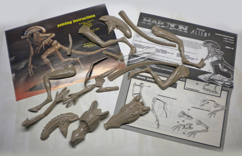 The Alien 3 from the 'defunct' HALCYON brand is in 1/9th scale. It's an injected plastic kit that also includes a transparent plastic dome for the skull. The dome will not be used...