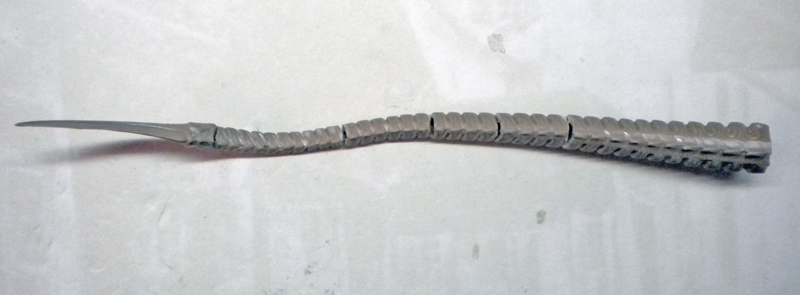 Tronçonnage de la queue. La queue est découpée en de multiples endroits afin de lui donner une position plus en harmonie en fonction du déplacement...