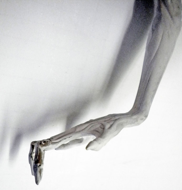 Les doigts d’une main sont modifiés pour s’adapter au décor ainsi que les pieds pour permettre une meilleure pose sur la tuyauterie...