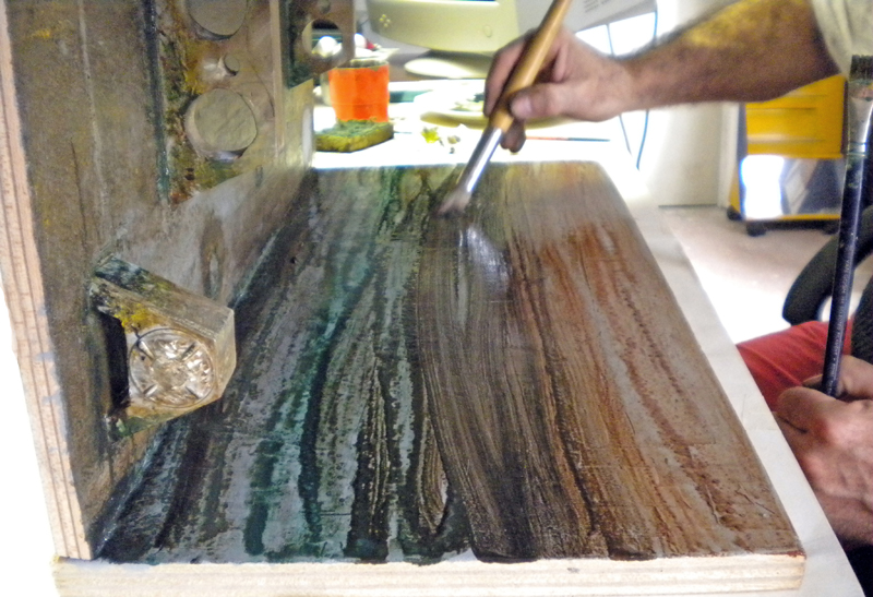 Patina and ageing of walls. Base: LIQUITEX acrylic in...