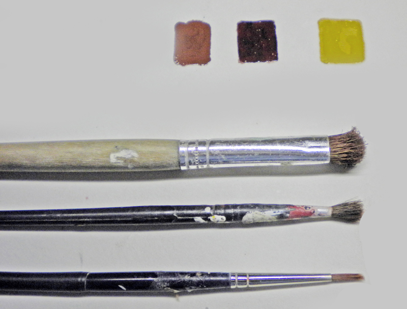 133 HUMBROL (marron) – 9017 HELLER (rouge foncé) - HUMBROL 24 (sable foncé).
