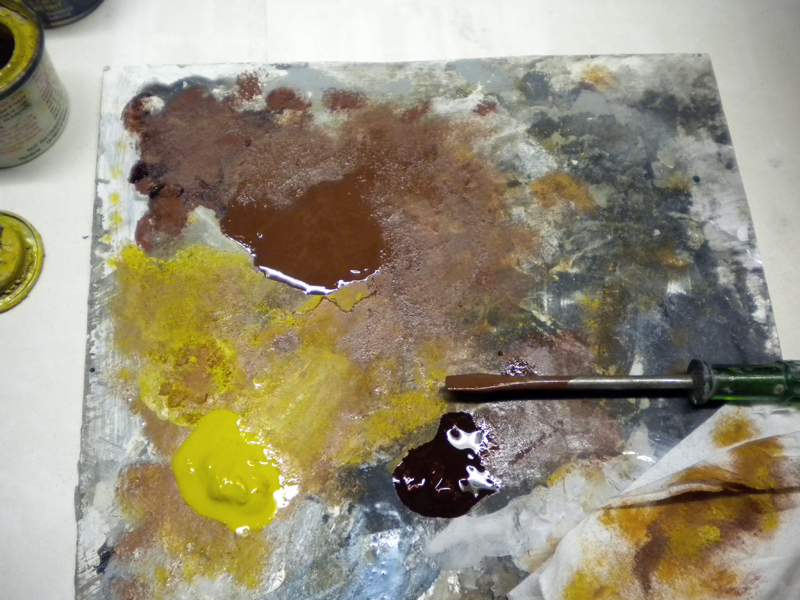 No pigments are used here... We're going to see that you can achieve similar effects simply by using oil paint...