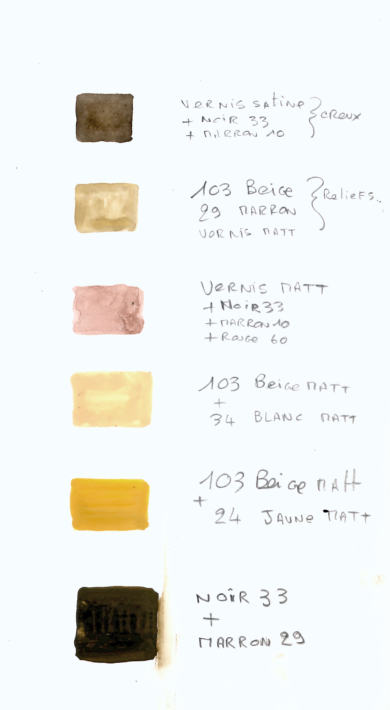 ... Ensuite on passe un vernis satiné coloré en noir HUMBROL 33 + marron foncé HUMBROL 10 dans les creux.