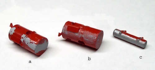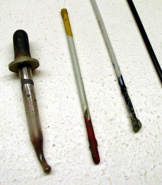 Utilisez des restes de grappes en plastique ou des baguettes de bois de brochettes pour bien remuer la peinture au fond des pots au moins 5 MINUTES (en hiver, réchauffez les pots quelques heures avant sur un radiateur). Il ne doit plus y avoir de pâte au fond du pot. Rajoutez du White Spirit avec un compte-gouttes si la peinture est trop épaisse. Je conseille à ceux qui peignent régulièrement à l'aérographe d'avoir deux pots d'une même couleur, une pour l'aérographe, l'autre pour le pinceau, j'y reviendrai plus tard.