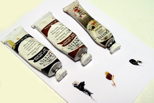 The brushes are flat sable hair oil brushes - expensive but essential....