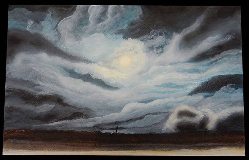 Le décor est traité à l'acrylique Liquitex en tube en se basant sur l'éclairage du dessin original...