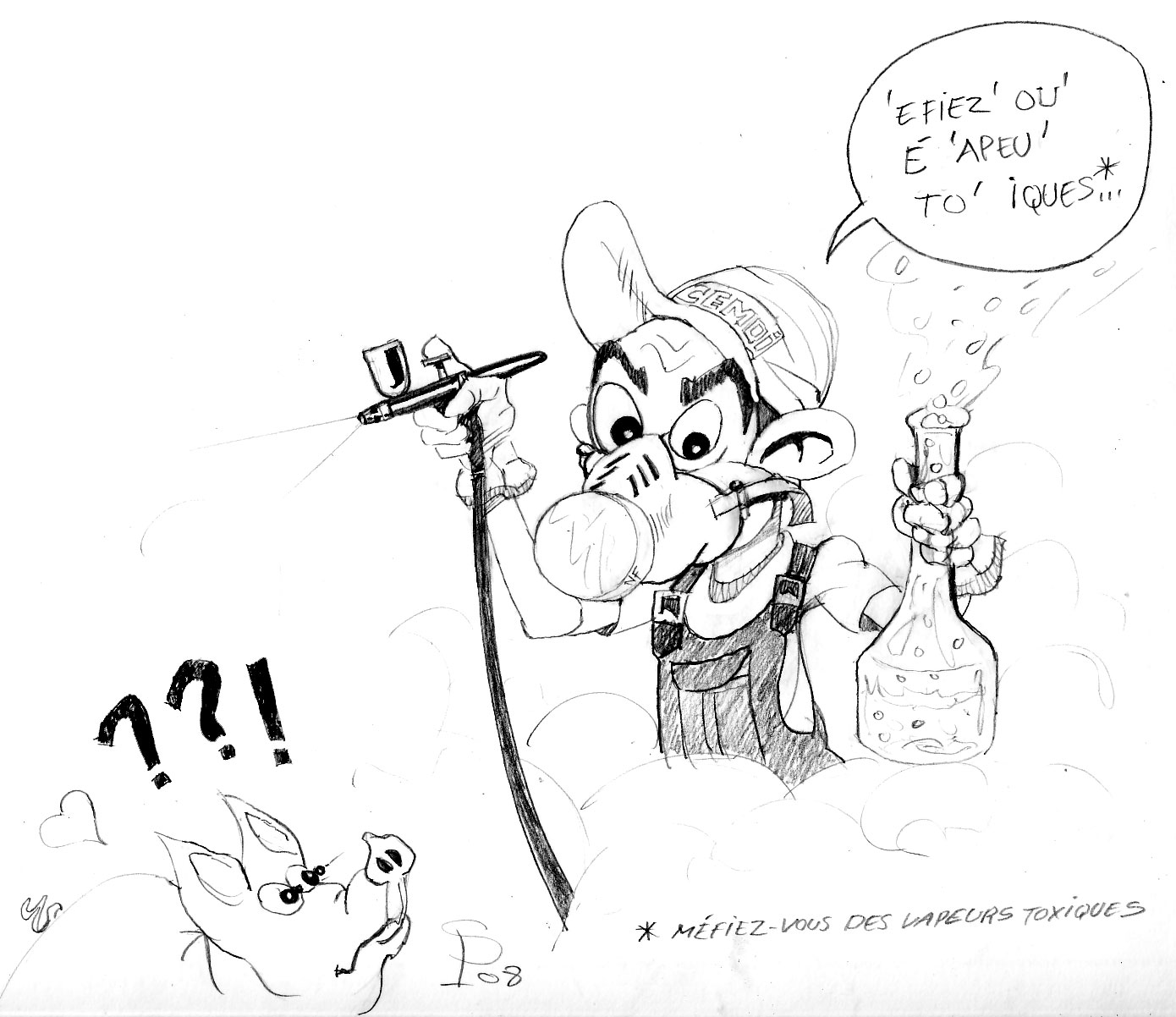 Le contact avec la peau est donc proscrit, de même se protèger intègralement le corps, la tête... Lors du passage en cabine de peinture tout en étant équipé correctement avec son masque à peinture.