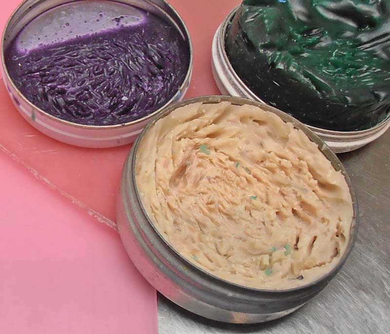 J'ai deux sortes pour le modelage, une cire qui se trouve sous forme de plaque (la même qui permet de modeler les prothèses conjointes et une autre trouvée dans un magasin spécialisé dans les arts-décos, marron censée être de sculpture mais que personnellement je trouve trop molle et collante justement. La cire rose est pour la forme et la marron pour « remplir » grossièrement les volumes...