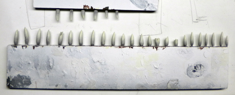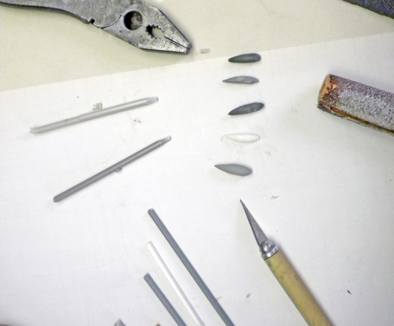 Making the teeth. Take scraps of plastic model sprue or rounded profiles...
