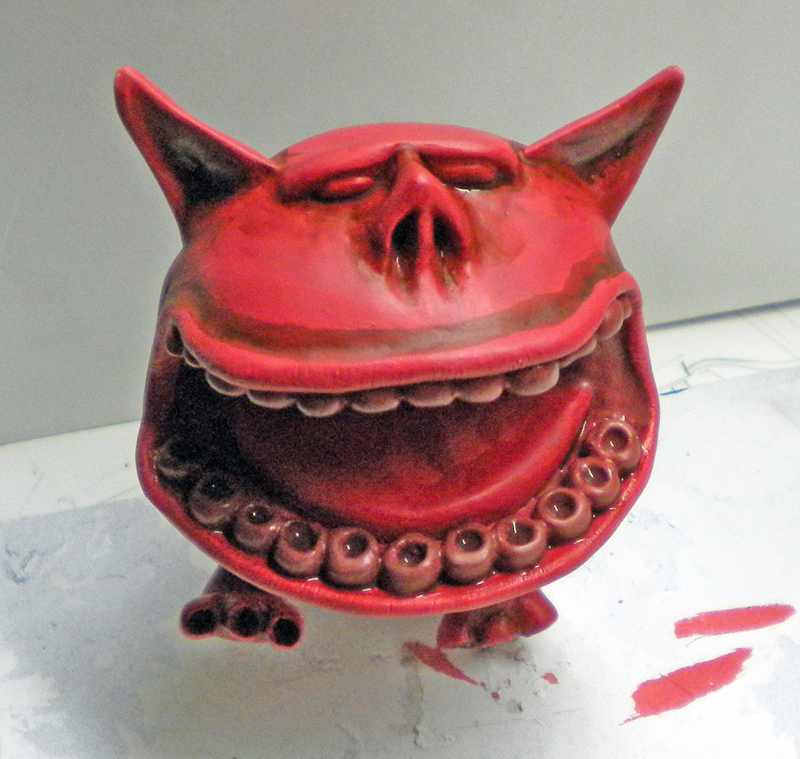At this point, if you are happy with your sculpture, proceed to smooth the whole of your Squig's skin using acetone with a flat, soft brush and wiping off the drips very often...