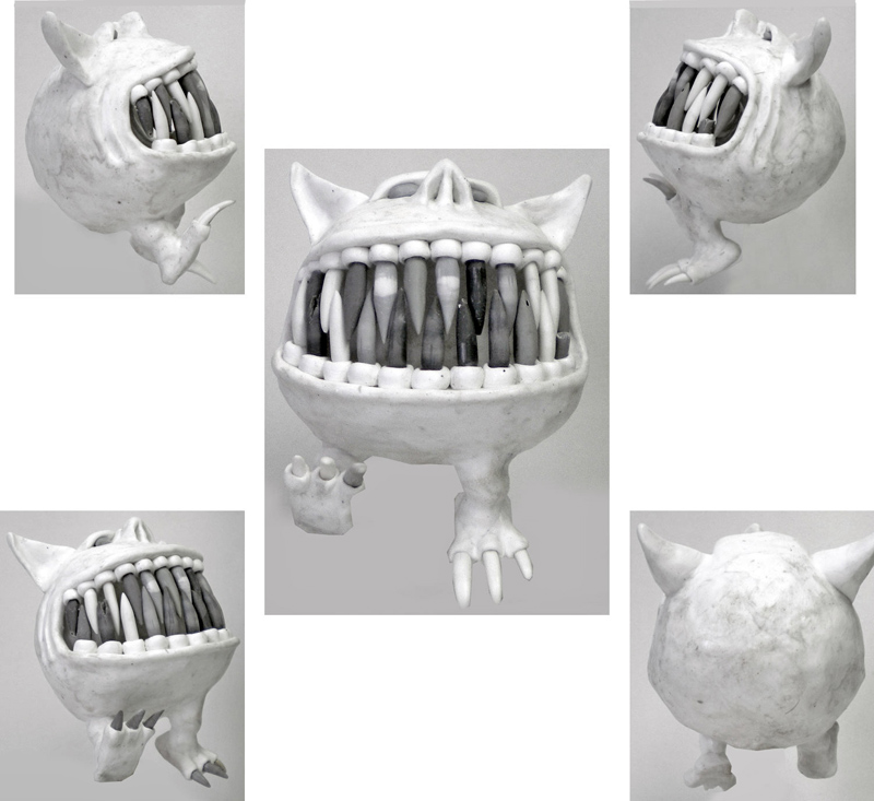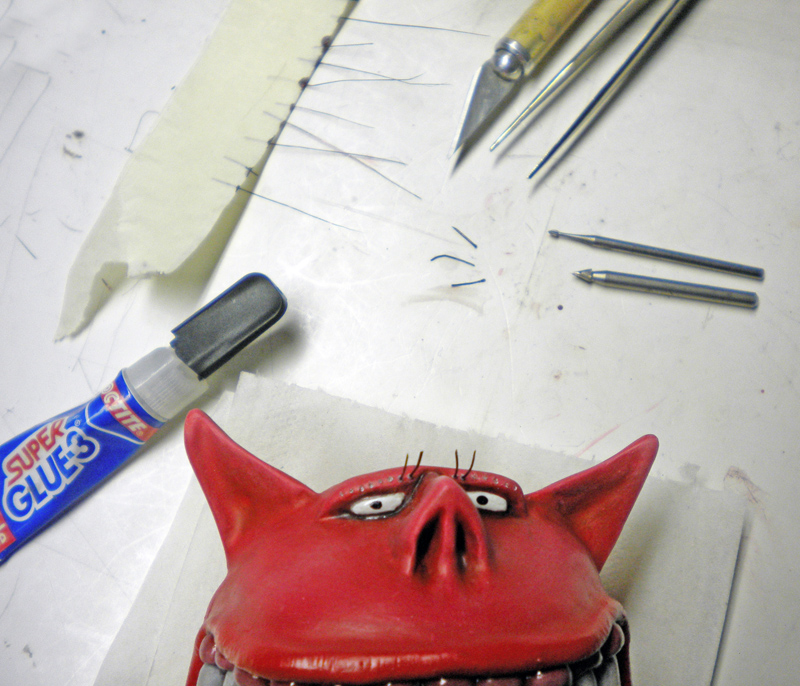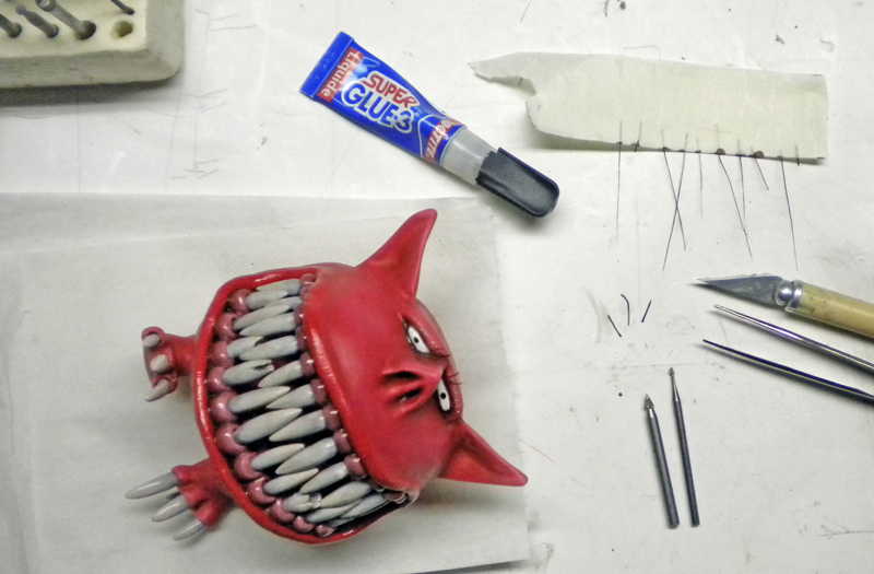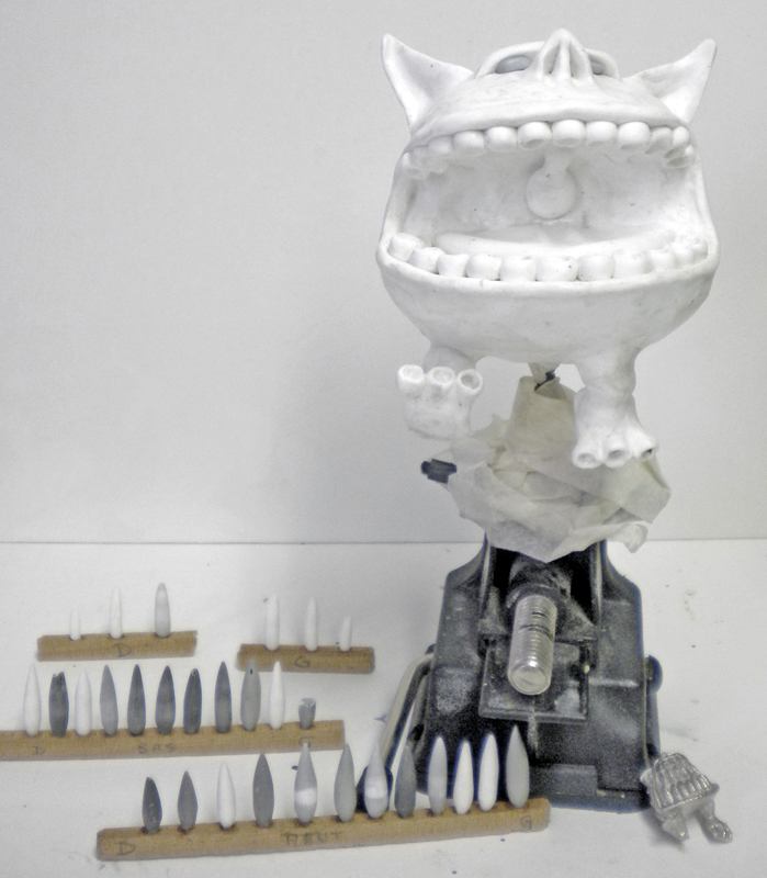 Pose des dents dans la gueule du squig pour essai et validation finale du modèle en comparant avec le sujet originel d’inspiration...