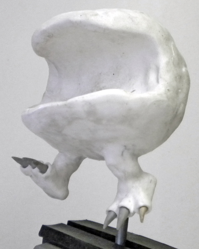 Once you are satisfied with the overall proportions of the body shape, proceed with the ancillary elements, in this case the legs. Finish one leg completely with its claws to see the overall proportions and judge before making the other leg...