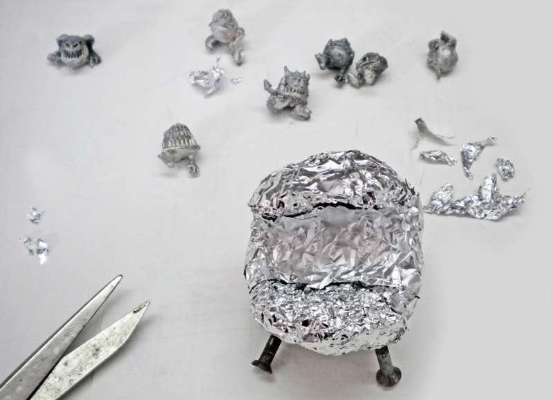 Use a cutter to cut out the mouth of the beast, and carefully cover this with aluminium foil to create a smooth, clean surface...