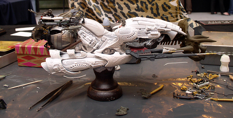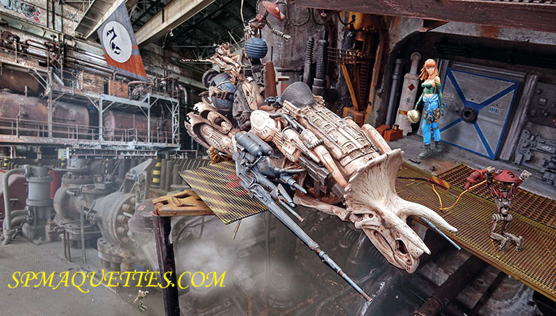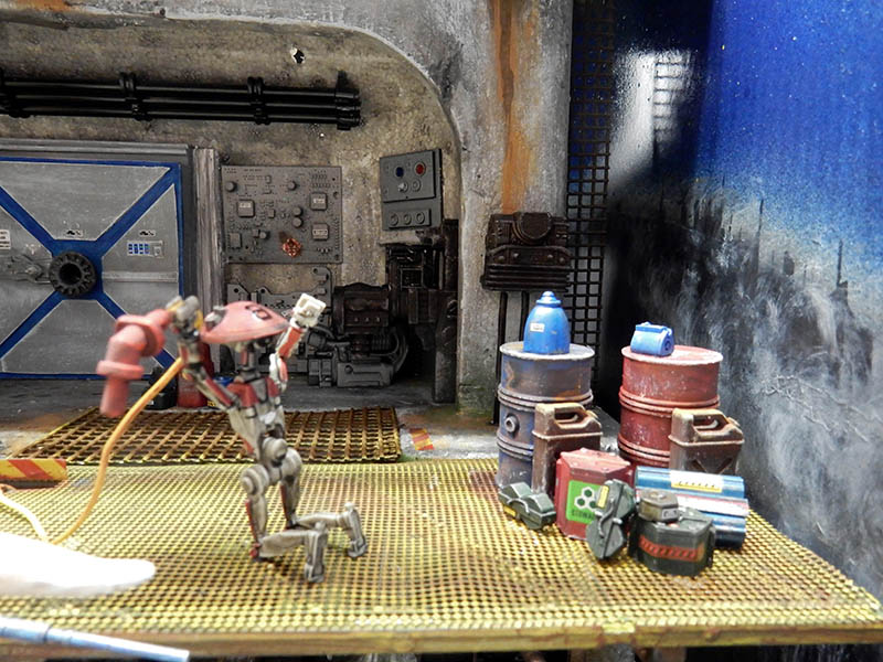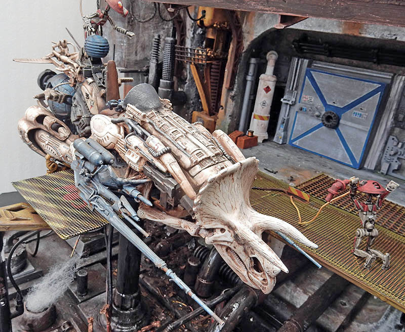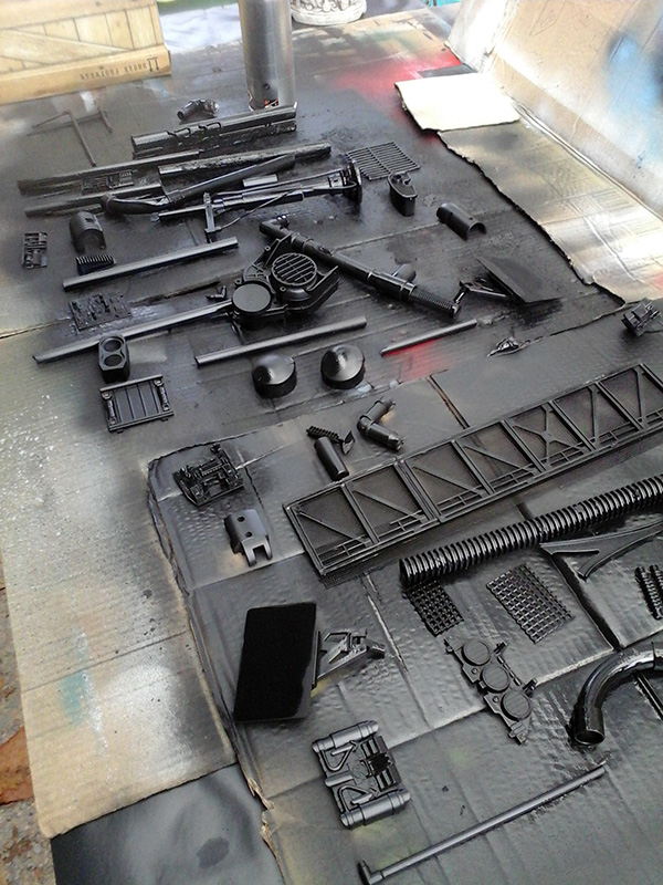 Après quelques modifications, il est peint en gris et vieilli. On peut voir à l’avant-plan, les peintures utilisées...