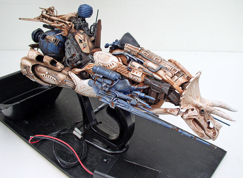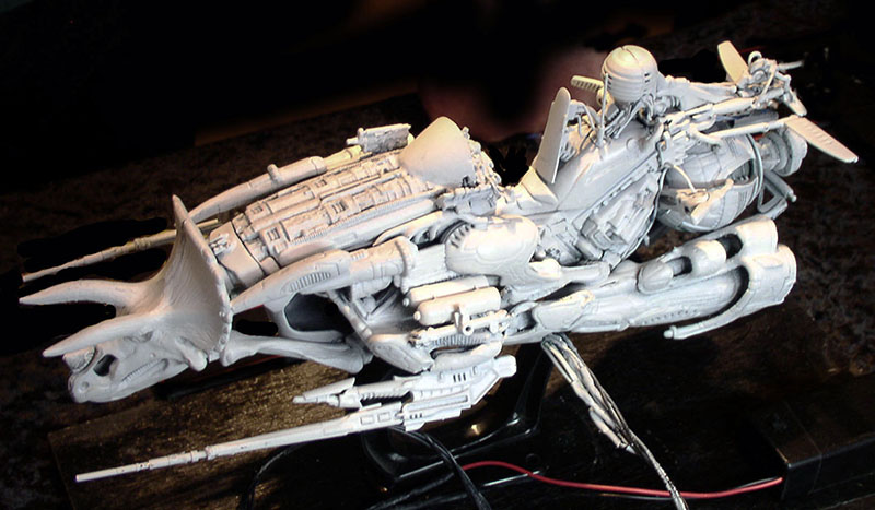 Puis, finalement,  une figure de proue est ajoutée - une tête de dinosaure en jouet - et un éclairage à partir de leds de couleur...