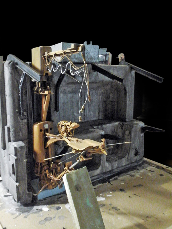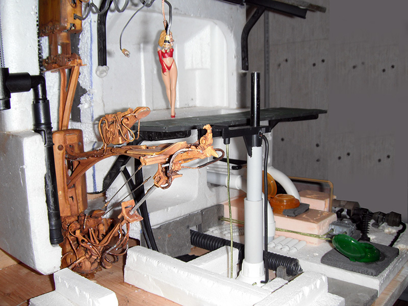 On aperçoit les câbles de l'éclairage qui seront insérés dans le décor...