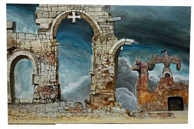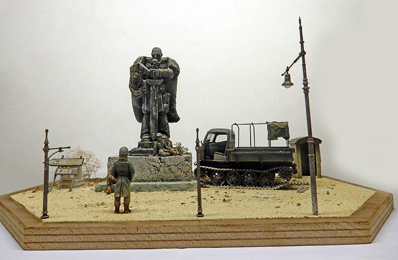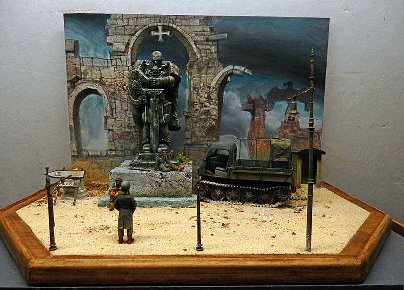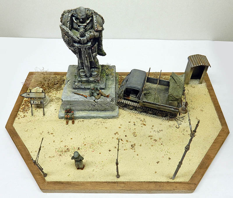 Un diorama facile à réaliser et qui a de l'allure au final... Une boîte de décors de la marque Warhammer a servi de base. Seule la statue est utilisée. L'inspiration vient des idées de grandeur d'Hitler car il souhaitait faire élever des monuments pharaoniques pour sa mémoire par son architecte Albert Speer, futur ministre de la guerre...