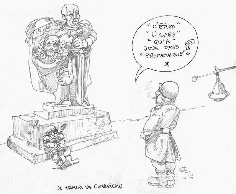 Deux seront disposés sur la statue, le troisième debout en face la regardant...