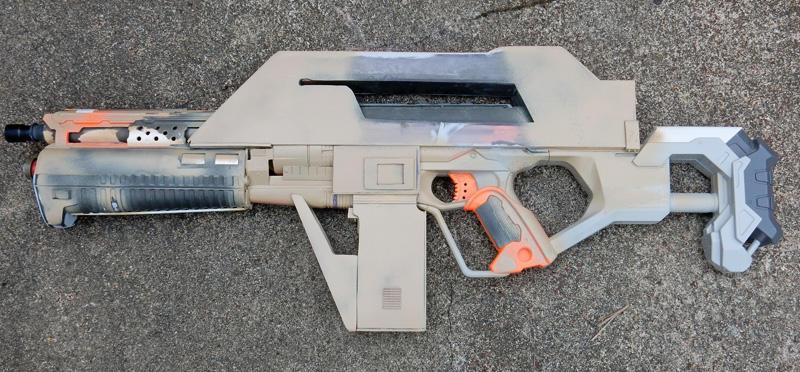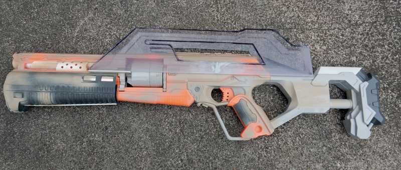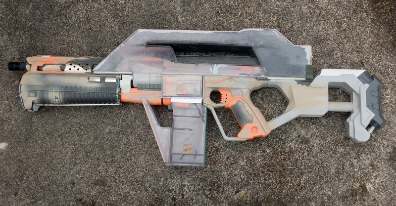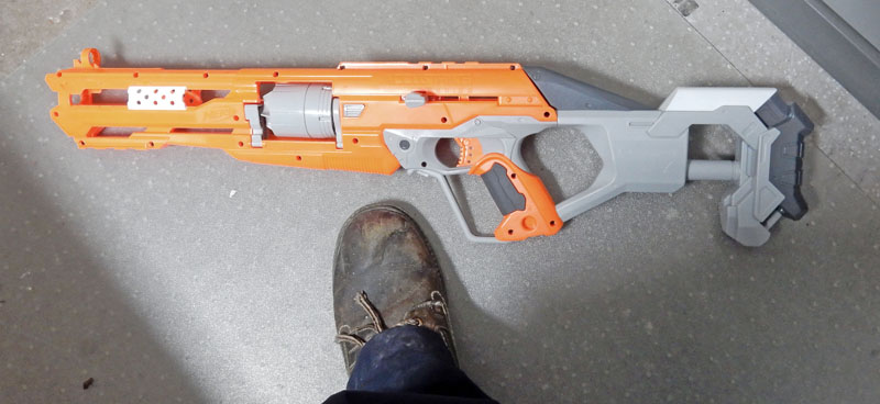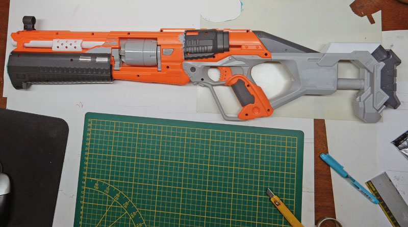 Fabrication. Base, un "Nerf" acheté 10 euros en vide-greniers (valeur : 40 euros)...