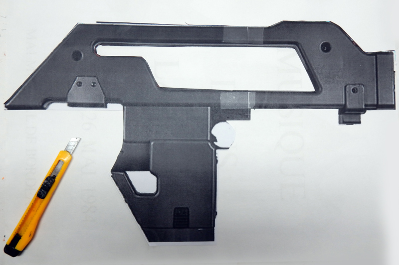 Il s'agit de se rapprocher au plus prêt de la forme de l'arme. Non de détailler au boulon près... Les "puristes" vont râler mais ce n'est pas important...