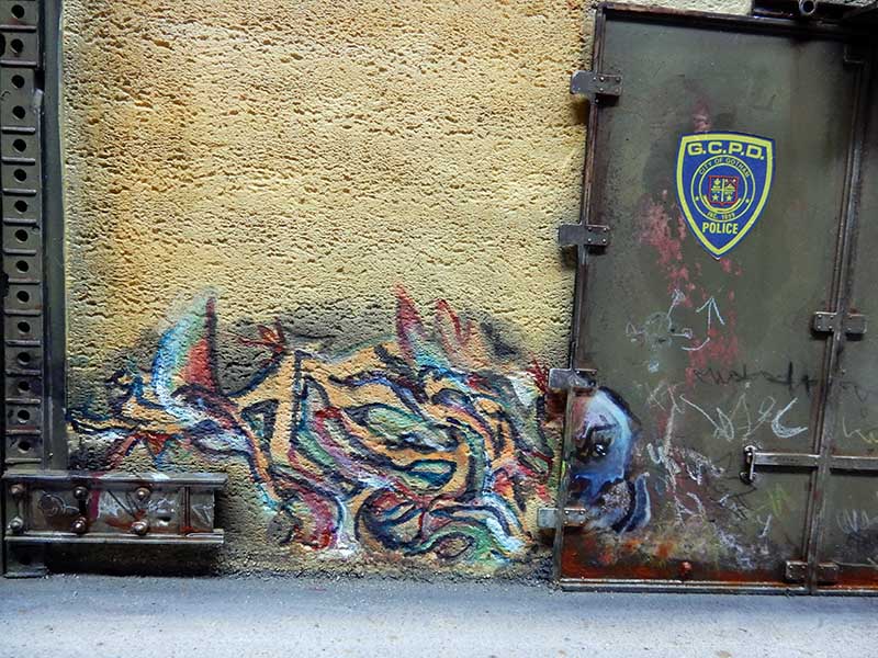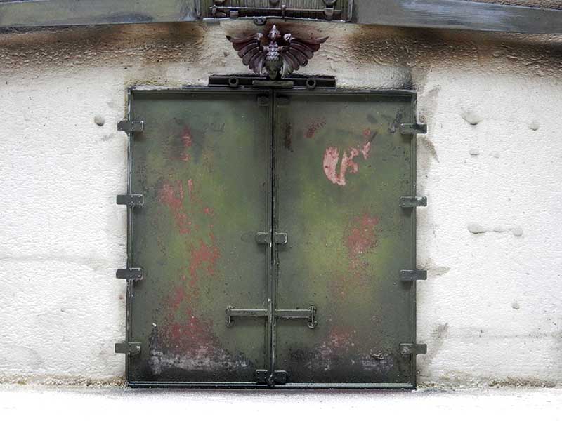 Le sol et le mur du commissariat de Gotham City sont du polystyrène extrudé. Les portes et accessoires divers sont collés à la colle à bois sur le polystyrène - JAMAIS DE COLLE PLASTIQUE OU COLLE SUPERGLUE SUR CE MATERIAU QUI FOND AU CONTACT DE CES PRODUITS...