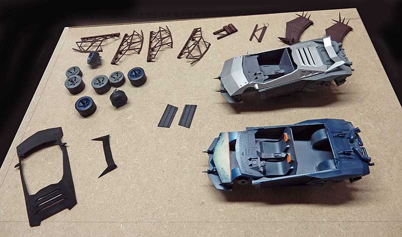 Les voitures subiront un vieillissement sur certaines parties et seront donc traitées à la laque à cheveux...