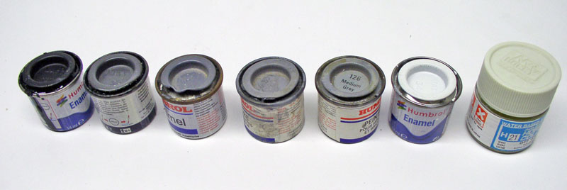 Base : Humbrol H33 + HB3 (ocean grey/gris moyen) - l'HB3 n'étant plus produit, un gris 32 devrait faire l'affaire...