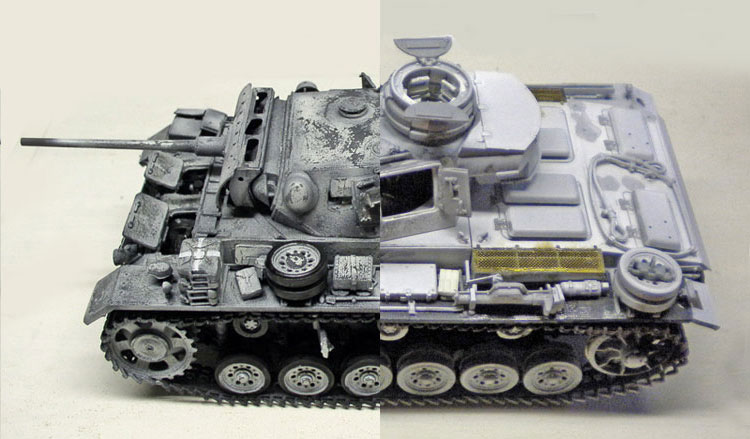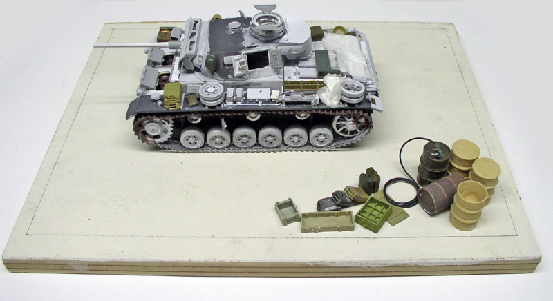 Le kit utilisé ici est le Panzer III de la marque Dragon, superbe de finesse et livré avec de la photodécoupe. Il sera transformé en Ausf M, plus intéressant esthétiquement...