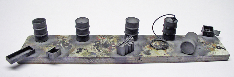 Avant peinture du modèle, une simulation a été faite sur une plaque de contreplaqué avec différents accessoires.