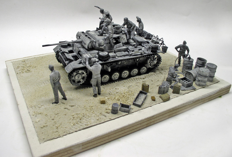 Gluing of figures and accessories. Superglue on the tank, quick-setting wood glue for the decor...